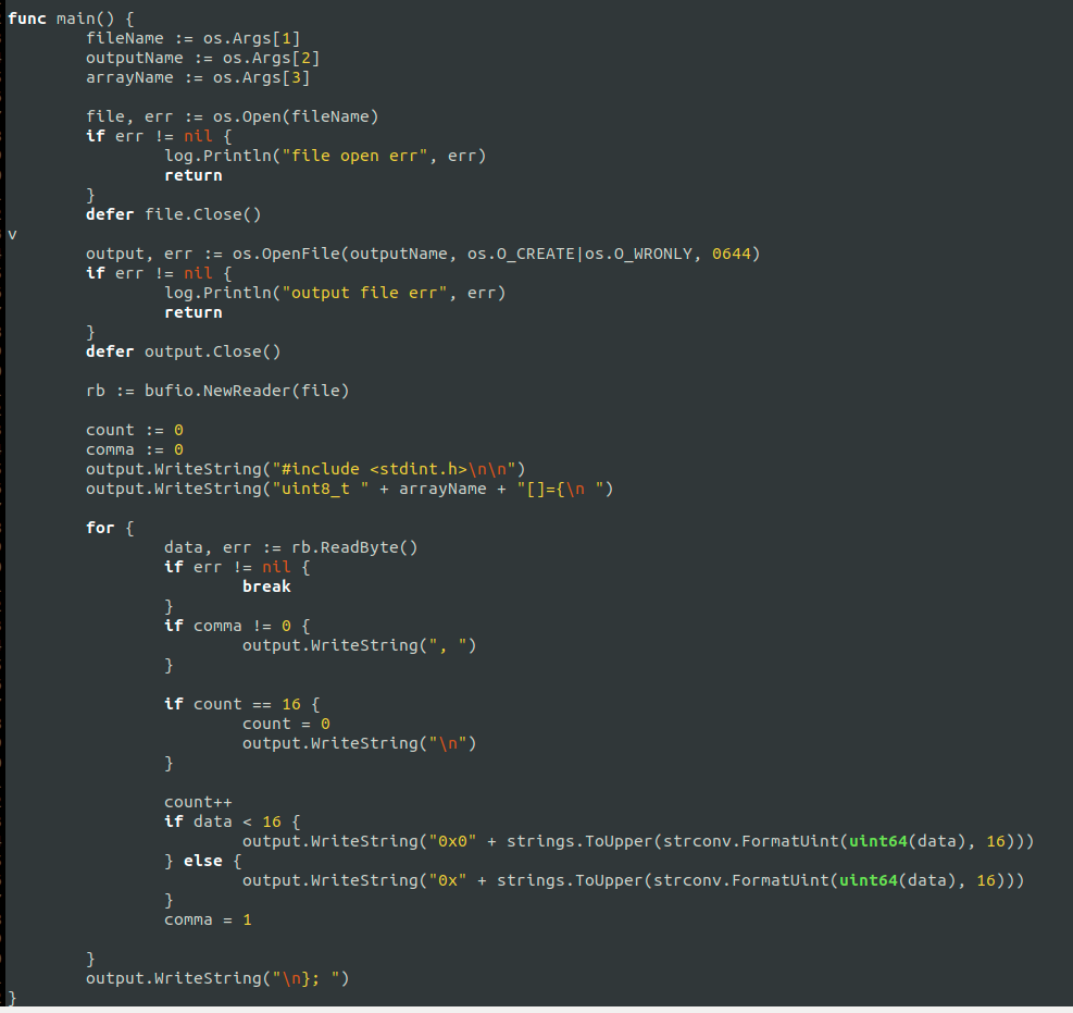 파일을 Hex array로 변환하고 C 헤더파일로 만드는 간단한 프로그램..