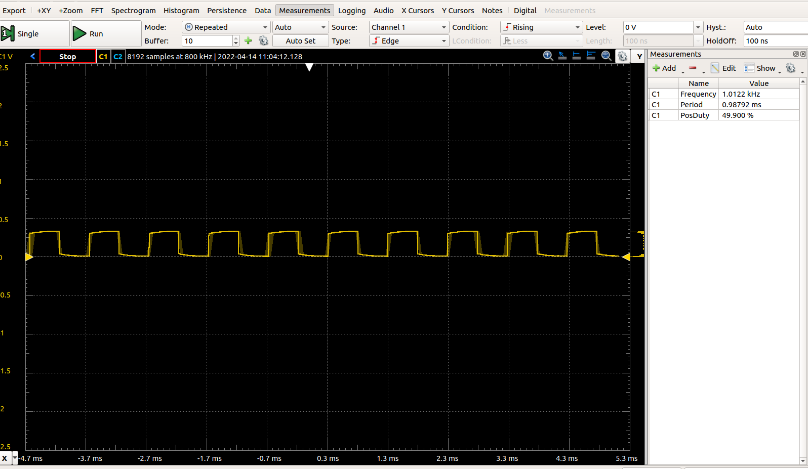 1khz의 PWM이 잘 생성된 것을 확인할 수 있다.