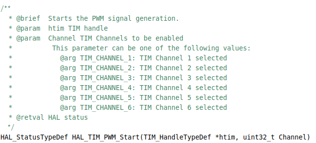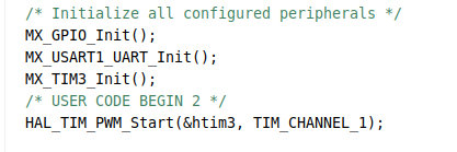 타이머를 초기화하고 HAL_TIM_PWM_Start()함수를 쓰면 PWM이 생성된다.