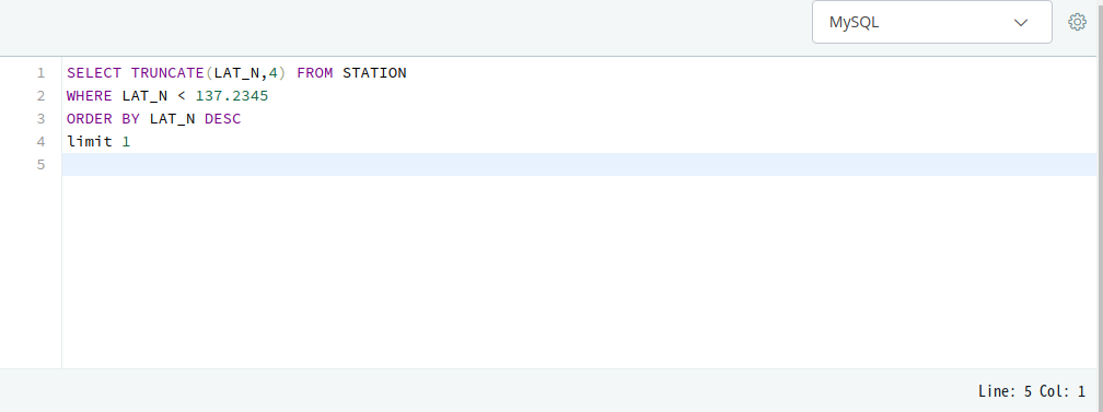 137.2345 보다 작은 LAT_N 중 가장 큰 LAT_N을 소수점 4자리까지 표현