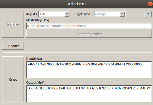 KISA에서 제공하는 ARIA 암호화 예제를 이용한 간단한 암호화를 해보았다.