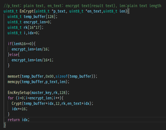 16바이트로 딱 떨어지지 않는 데이터라도 제로 패딩을 하고 암호화를 하도록 기존의 함수를 조합한 정도뿐이지만...