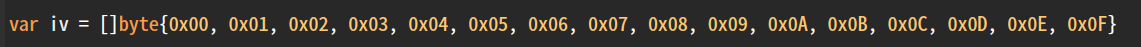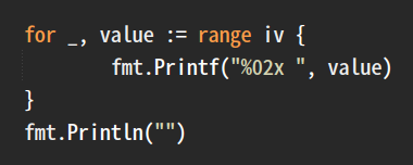 위와 같은 iv []byte를 fmt.Println하면 아래와 같이 int형으로 출력이 된다.